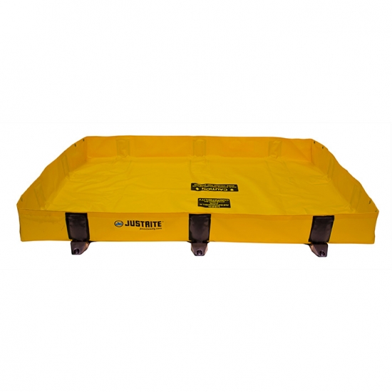 Przenośny, wszechstronny zestaw, szybko się uruchamia w celu uzyskania natychmiastowej odpowiedzi na wyciek. Szczelny, twardy materiał EnGuard ™ I z powłoką PVC zapewnia szeroką odporność na promieniowanie UV i chemikalia. Wanna jest odporna na wielokrotne używanie. Opatentowane uchwyty ścienne Rigid-Lock maksymalizują przestrzeń użytkową wewnątrz nasypu i znacznie zmniejszają ryzyko potknięcia się na obwodzie. Wspornik ze stali nierdzewnej podtrzymuje ścianę w pozycji zablokowanej 90 ° dla bezpiecznego, szczelnego zamknięcia. Wannę łatwo można złożyć do niewielkich rozmiarów -do przechowywania w ciężarówkach, pojazdach ratunkowych i zestawach przeciw wyciekom. Dodaj opcjonalne kratownice podłogowe, aby zmniejszyć kontakt z zanieczyszczonymi cieczami przez personel lub sprzęt. Pomaga w przestrzeganiu EPA w zakresie zapobiegania rozprzestrzenianiu się i zapobiegania wyciekom (SPCC).