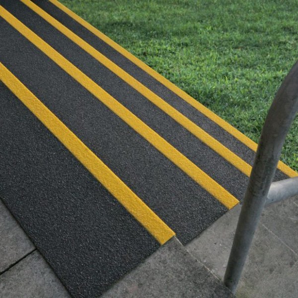 Trwałe nakładki wytwarzane z włókna szklanego i żywicy poliestrowej. Produkt pozwala całkowicie pokryć obszar schodów wewnętrznych/zewnętrznych w zakładach pracy i miejscach użyteczności publicznej. Wysoka odporność na ścieranie i świetne właściwości antypoślizgowe – powierzchnia pokryta grysikiem z węglika krzemu (korund). Właściwości antypoślizgowe zgodnie z normą DIN 51130: 2010, klasa R13. Klasyfikacja w zakresie reakcji na ogień wg EN 13501-1: 2007. Odporne na warunki atmosferyczne i promieniowanie UV. Kontrastowy kolor „nosków” spełnia wymagania DDA. Łatwość montażu – produkt wystarczy przykleić lub przykręcić do powierzchni. Możliwość stosowania wraz z arkuszami COBAGRiP Heavy.